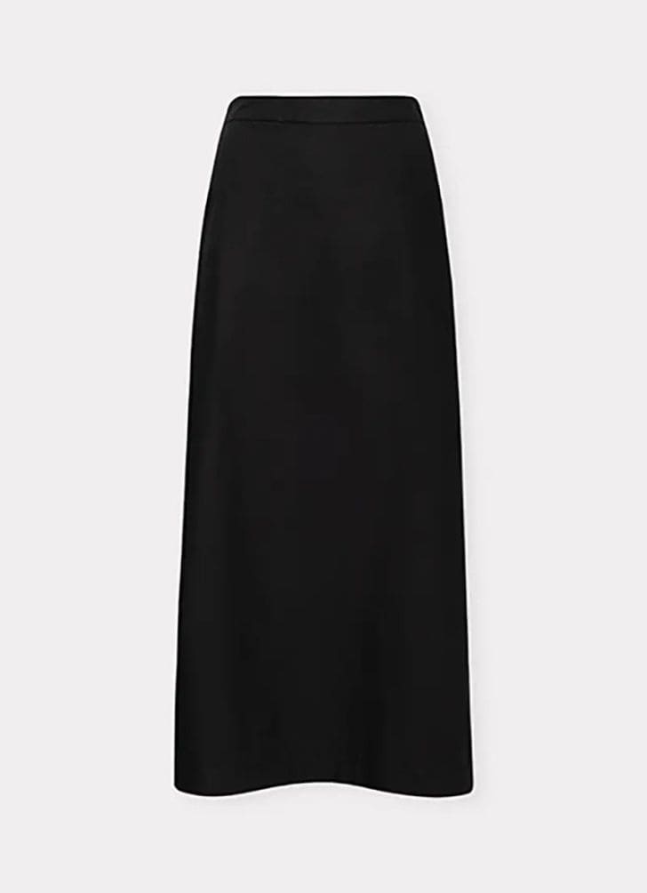 Saia reta em tricoline 100% algodão. Comprimento midi. Fenda posterior. Fechamento posterior por zíper metálico. Cós com elástico embutido nas costas. Basque removível com aplicação de flor de tricoline. Bolsos laterais diagonais.
